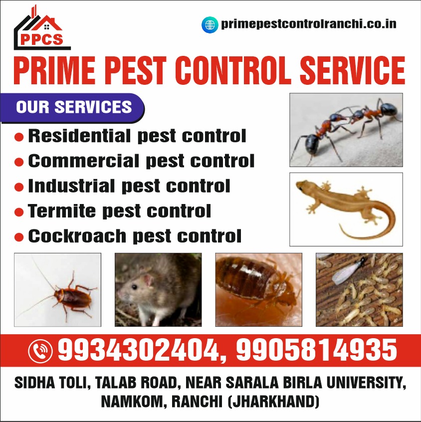Prime Pest Control, is the best pest extermination service in Ranchi . Our team is highly experienced and very knowledgeable when it comes to ridding a building of pests-and we also are able to help you prevent them from returning once they have been eliminated. We understand that infestations are a terrible problem and our goal is to provide you with quick, effective help when you need it. Whether you’re having an issue with termites, bed bugs, mosquitos, or other pests, our team is at the ready to banish them from your building. Our company can Sidha Toli Talaab Road, Near Sarla Birla University, Namkom, Ranchi, Jharkhand, a wide range of pest problems; we’ve helped clients with issues involving ants, termites, rodents, bed bugs, spiders, beetles, fleas, fire ants and more. If you’re concerned you may have a problem in your home, hiring a professional is the fastest way to resolve the situation. We’d love to help you get things back to normal again as quickly as possible, or answer any questions you have about how pest control services work.